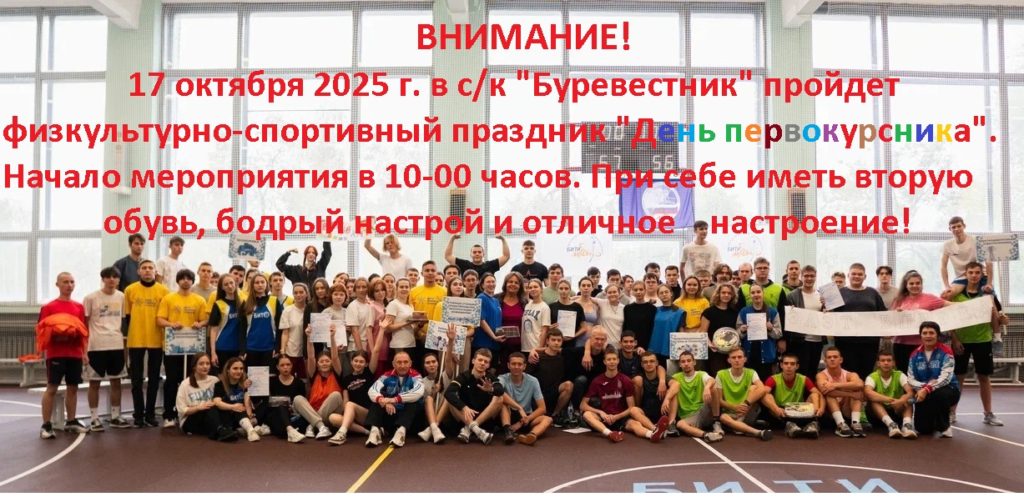 17 октября в с/к «Буревестник» пройдет физкультурно-спортивный праздник «День первокурсника» 14.10.2025 Просмотров: 1 798
