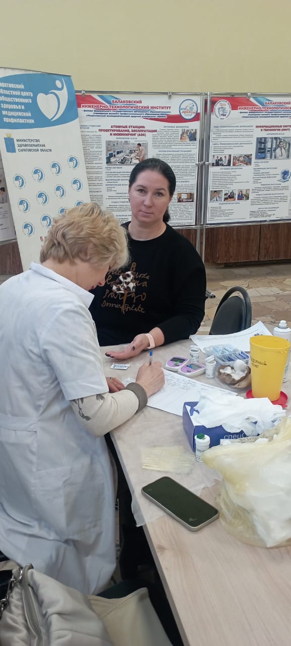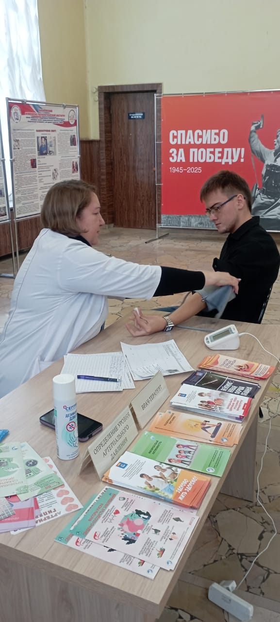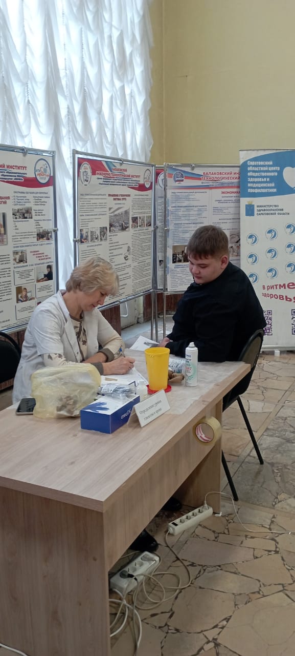 27.10.2025В рамках реализации проекта «ЗОЖМОЛОДЕЖЬ» на территории Саратовской области, с целью раннего выявления и профилактики факторов риска развития хронических неинфекционных заболеваний, студенты БИТИ НИЯУ МИФИ приняли участие в выездной акции «ГУЗ Саратовского областного центра общественного здоровья и медицинской профилактики». Специалисты Центра провели медицинское скрининговое обследование обучающихся: антропометрия, расчет биологического возраста, измерение артериального давления, определение концентрации моноокиси углерода и уровня насыщения кислородом капиллярной крови, определение уровня глюкозы в крови. По результатам обследования студенты получили индивидуальную консультацию врача-терапевта.