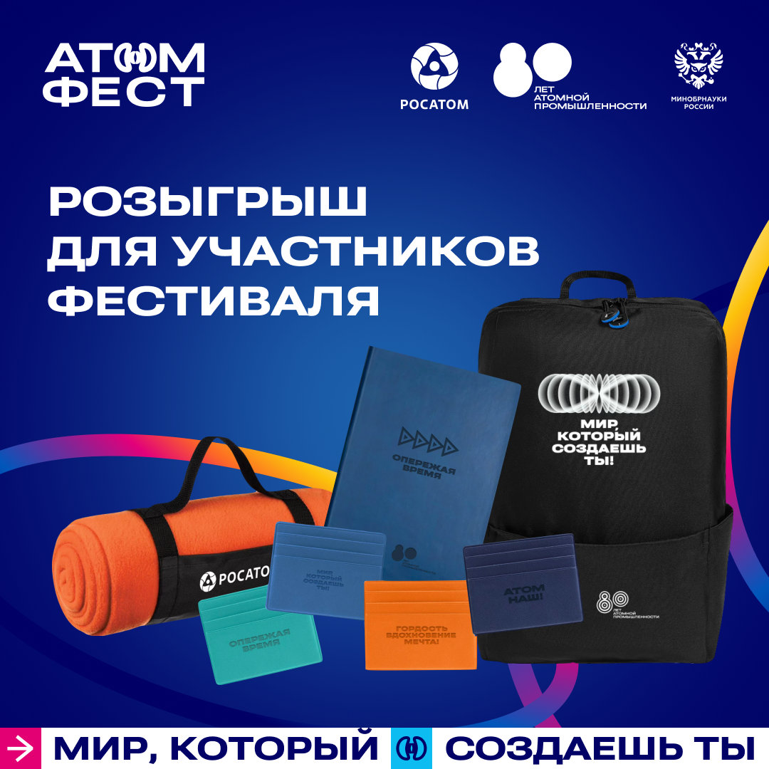 02.12.2025Всем, кто еще не успел получить памятные сувениры в честь 80-летия атомной промышленности, – розыгрыш в рамках Фестиваля АтомФест продолжается! Всего несколько простых условий, и ты на шаг ближе к подаркам и работе мечты.