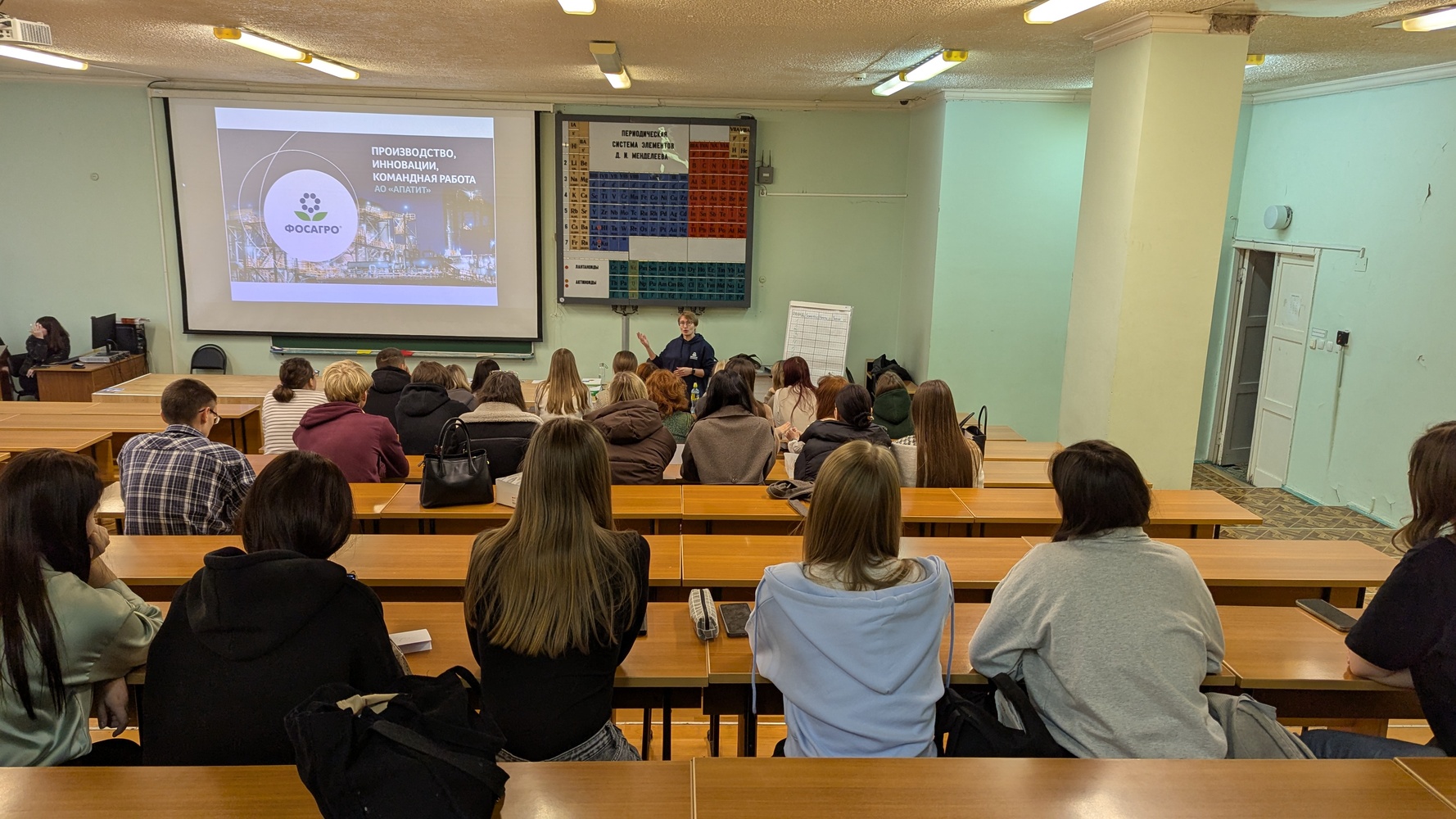 В рамках реализации Дорожной карты взаимодействия БФ АО «Апатит» и БИТИ НИЯУ МИФИ 2 декабря 2025 года для студентов, обучающихся по направлению подготовки 18.03.01 «Химическая технология», была проведена встреча с представителями компании «ФосАгро».