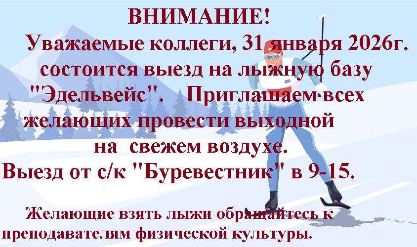 31 января состоится выезд на лыжную базу «Эдельвейс»