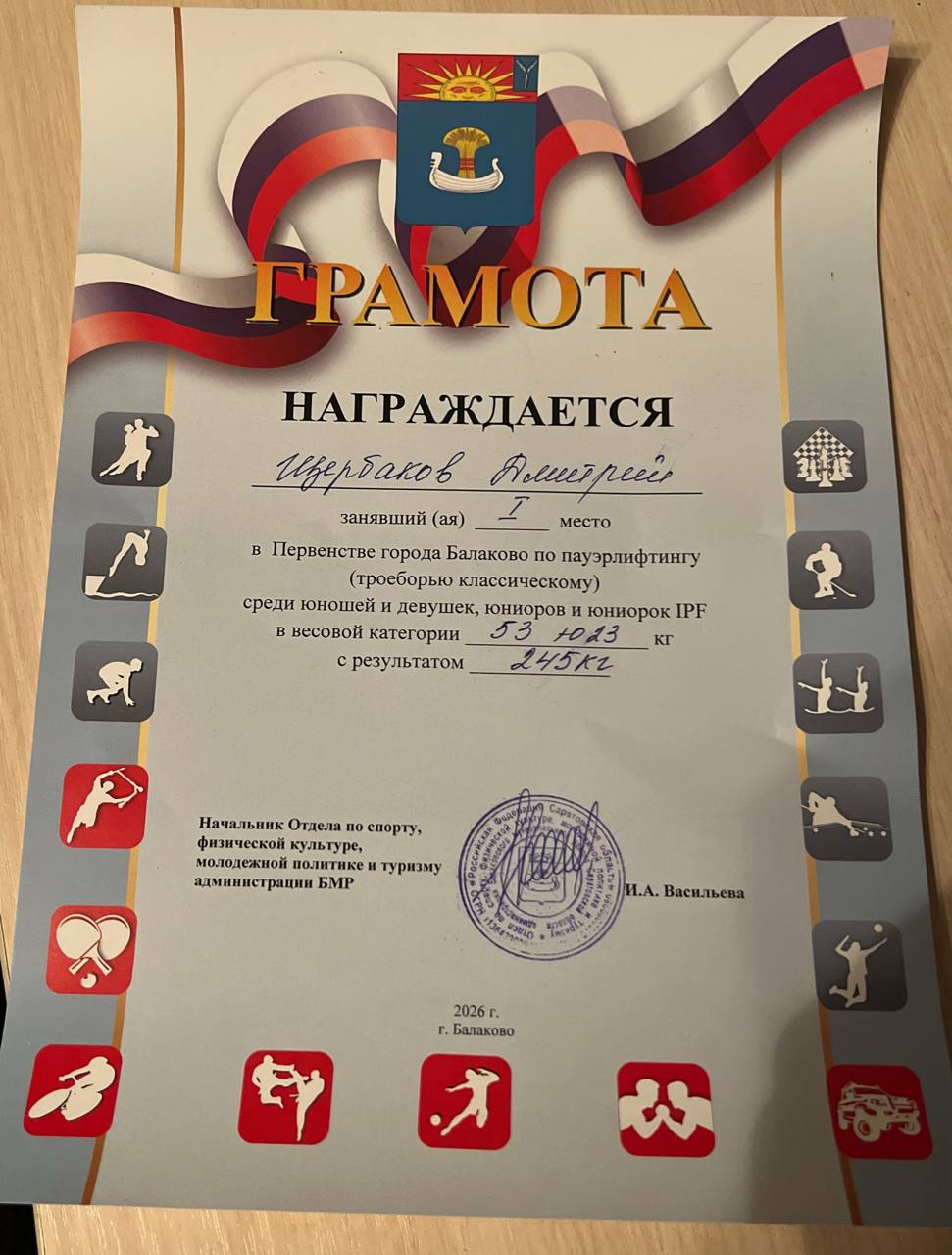 14 февраля 2026 года в спортивном комплексе «Альбатрос» прошло Первенство г. Балаково по пауэрлифтингу (классическому троеборью) среди юношей и девушек, юниоров и юниорок IPF. В своей весовой категории студент БИТИ НИЯУ МИФИ Дмитрий Щербаков занял I место (245 кг – результат спортсмена).