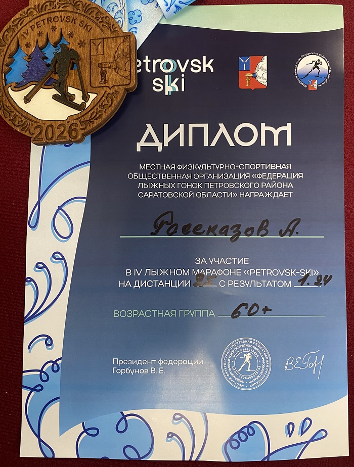 15 февраля 2026 года в г. Петровск прошел IV лыжный марафон «PETROVSK-SKI». На дистанции 25 км в своей возрастной категории преподаватель БИТИ НИЯУ МИФИ Рассказов А.В. занял III место.