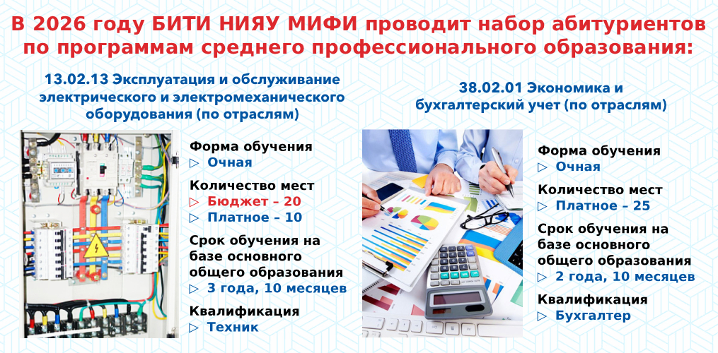 12 января 2026 в 11.00 в большом актовом зале БИТИ НИЯУ МИФИ состоится организационное собрание студентов заочной и очно-заочной форм обучения. Зимняя сессия у студентов заочной формы обучения 1 курс — с 12.01.2026 г. по 29.01.2026г, 2 курс — с 12.01.2026 г. по 31.01.2026г, 3-5 курсы — с 12.01.2026 г. по 01.02.2026г. Зимняя сессия у […]
